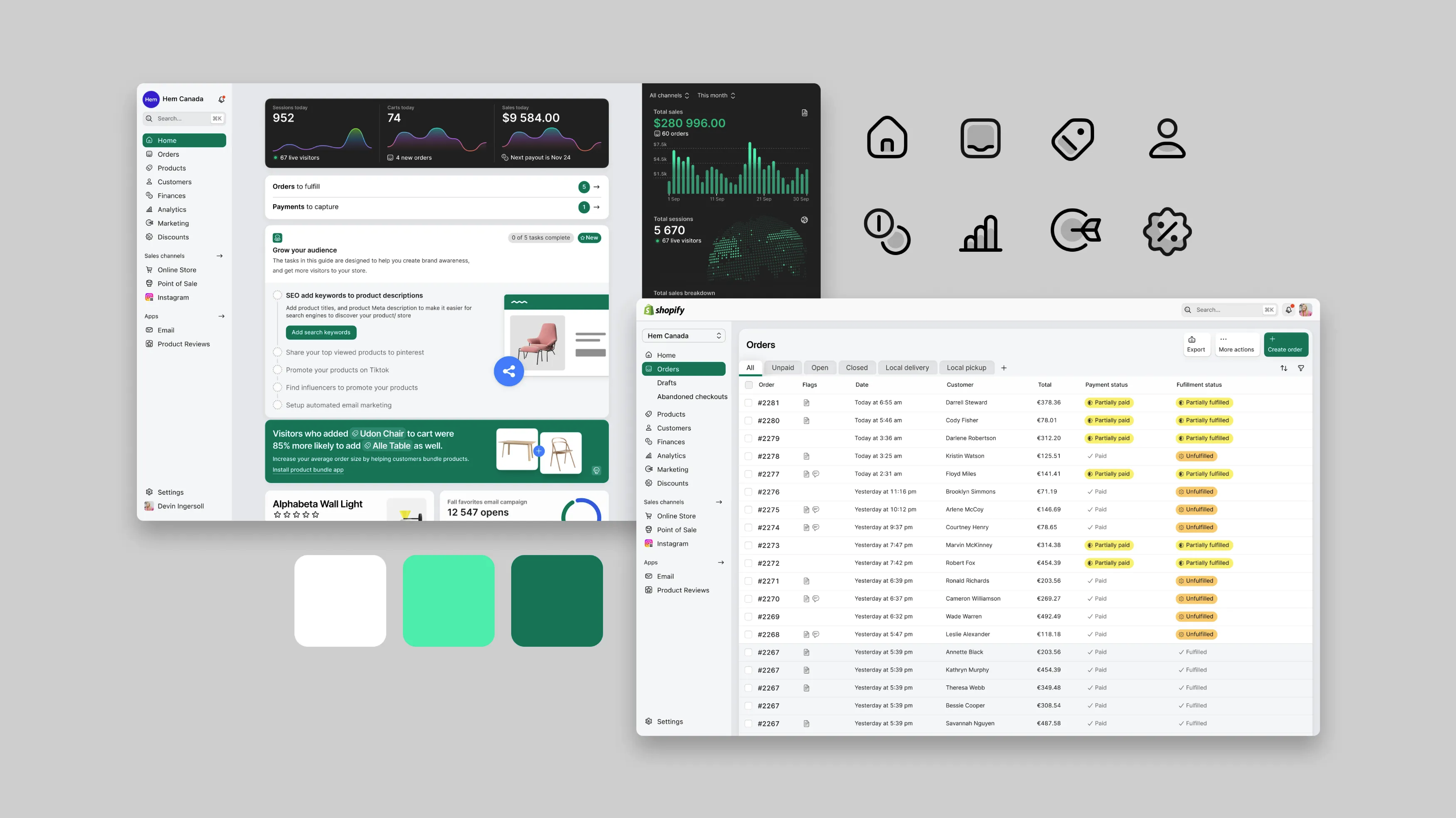 All of this culminated in a full modernization of Shopify's core product – the merchant admin. We progressively layered these style updates, starting with type, then moving sequentially to icons, colors and layout.